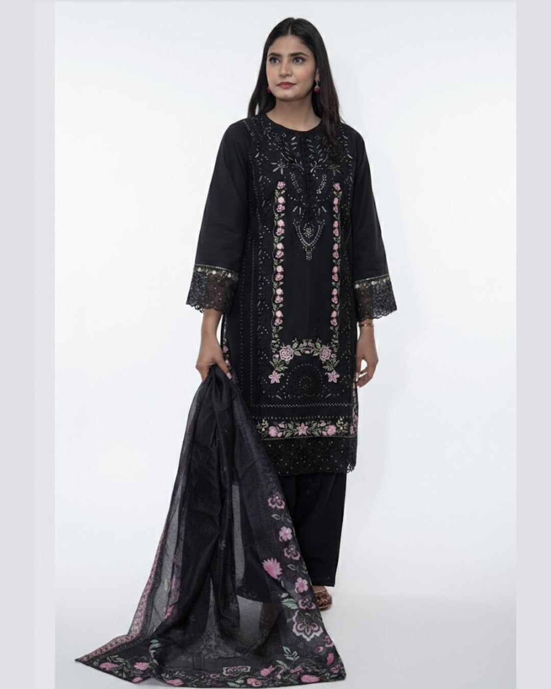 Shirt Fabric : Cotton  Trouser Fabric : Cotton  Season : Summer Outfit Type: Eastern   Description: Embroidered 3-Piece Suite showcases delicate embroidery...