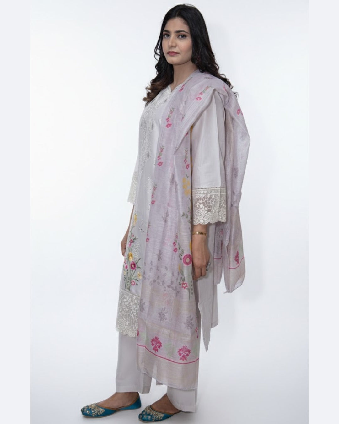 Shirt Fabric : Cotton  Trouser Fabric : Cotton  Season : Summer Outfit Type: Eastern   Description: Embroidered 3-Piece Suite showcases delicate embroidery...