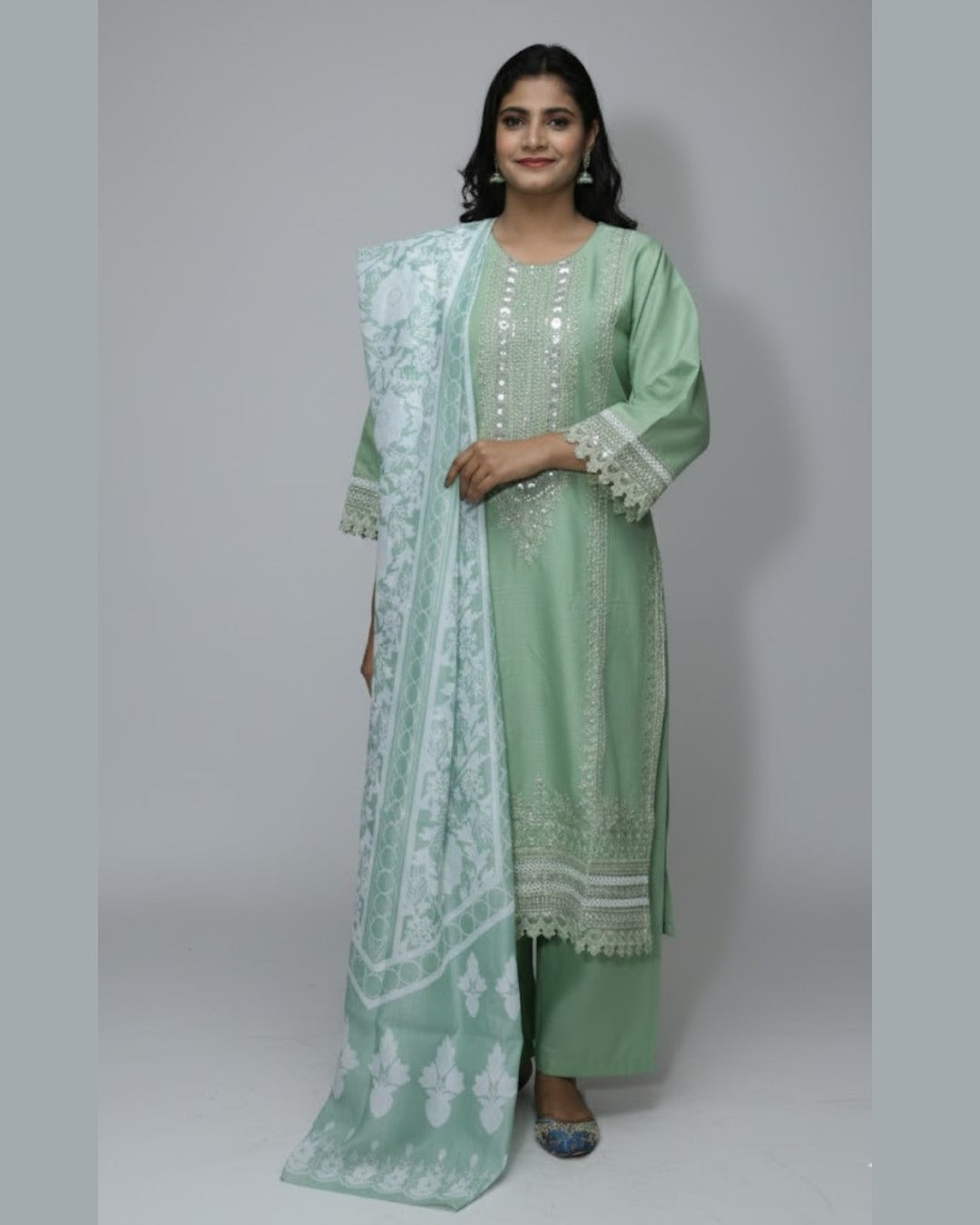 Shirt Fabric : Cotton  Trouser Fabric : Cotton  Season : Summer Outfit Type: Eastern   Description: Embroidered 3-Piece Suite showcases delicate embroidery...