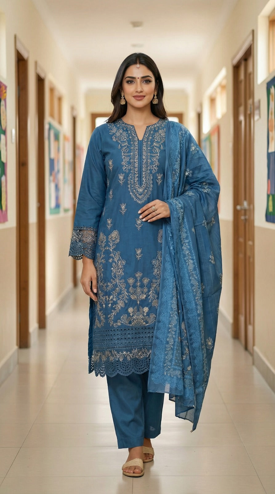 Shirt Fabric : Cotton  Trouser Fabric : Cotton  Season : Summer Outfit Type: Eastern   Description: Embroidered 3-Piece Suite showcases delicate embroidery...