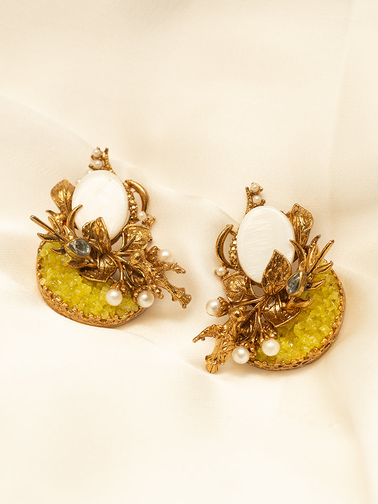 Standard size Trendy & stylish Turkish 3D earring crafted with metal & stones giving elegant & luxurious vide.